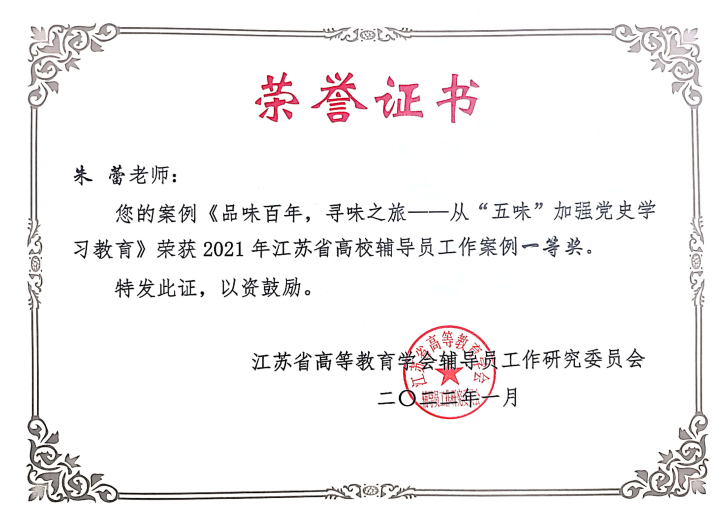 该案例获得江苏省高校辅导员工作案例一等奖。