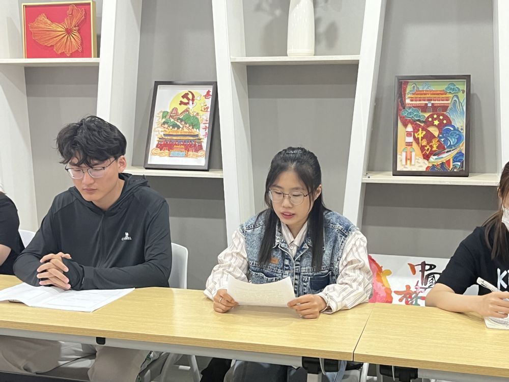 第一小组围绕“作为新时代青年,如何用青春践行党的二十大精神?”畅谈感悟。朱劼同学表示:“作为新时代的青年我们要坚定不移听党话、跟党走,不断坚定信念,提高自身素质能力,将我们的青春融入到党的事业之中。” 王鼎君同学补充道:“学习贯彻党的二十大精神就要坚定理想信念,提高理论水平。要强化学思践悟,持续用党的创新理论武装头脑、指导实践、推动工作。”
