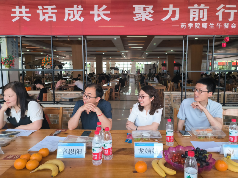 为推动学习贯彻习近平新时代中国特色社会主义思想主题教育走深走实,树立以学生为中心的发展思想,形成“贴近学生需求、引导学生成长、促进学生发展”的良好氛围。6月16日中午,药学院在听荷轩一楼举行师生午餐会。药学院院长李思阳、党总支副书记龙婧婧及师生代表参加了此次活动,午餐会由刘凯主持。